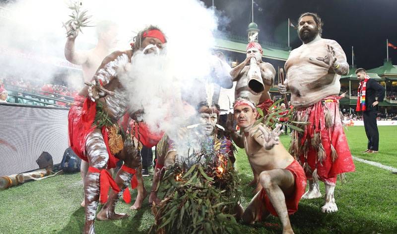 They’ll undoubtedly be ‘welcomed to country’ when they arrive by some urban whitefellas with their shirts off and moobs hanging out.